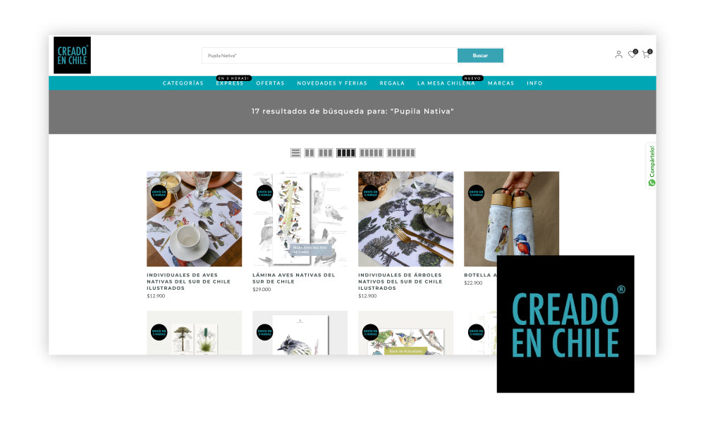 Tenemos varios productos disponibles en las tiendas de Creado en Chile.